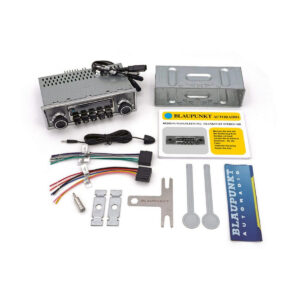 Frankfurt Stereo MB är byggd med klassiska 1-DIN-mått men stöder även axelmontage och andra installationsformat som var vanliga i äldre bilar. I kartongen medföljer monteringsmaterial för samtliga varianter, så du slipper leta efter kompletteringsdelar.