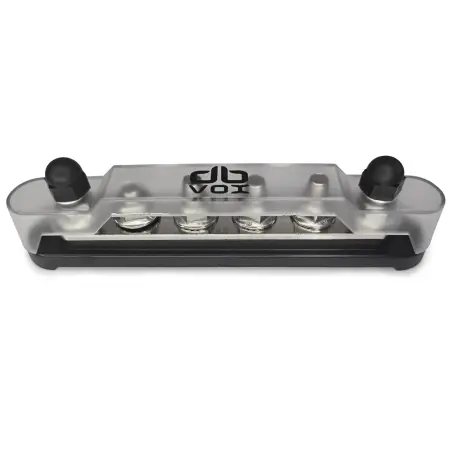 Kopplingsplint av mycket hög kvalitet med medföljande täckningskåpa som låses fast med 2 svarta kupolmuttrar.