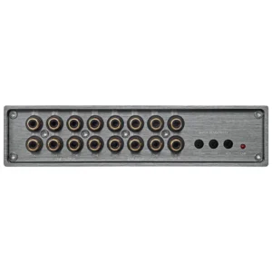 De åtta RCA-utgångarna levererar upp till 6,5V RMS, vilket ger rejäl marginal för att driva även krävande slutsteg utan att behöva maxa gain-kontrollerna.