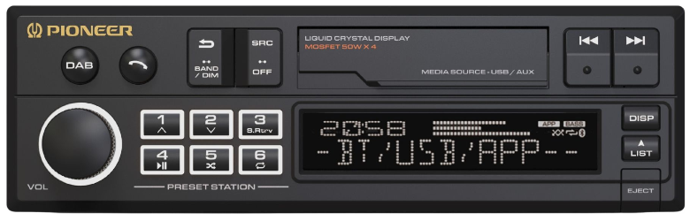 Pioneer Retroradio 4x50W, USB, Bluetooth, DAB